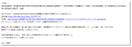 此次表彰大會(huì)中,我司ID部(工業(yè)設(shè)計(jì)部industrial design簡(jiǎn)稱ID)設(shè)計(jì)的日本FD項(xiàng)目一舉斬獲“可穿戴技術(shù)”、“流媒體”和“數(shù)字成像/攝影”三個(gè)領(lǐng)域的“CES 2022創(chuàng)新獎(jiǎng)”。